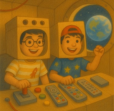 One day they were talking about space and they thought let us build our own spaceship. They do a little research on the internet and read some books about space and building a rocket. They both make a list and start collecting the things from the storeroom, kitchen, backyard, craft box and electrical equipment box.