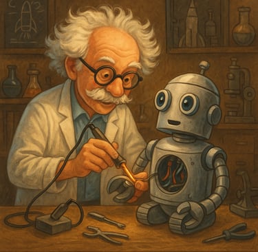Once upon a time there lived a scientist named Bob. he wanted to send a robot into space. Bob looked funny because he had curly white hair. It almost made him look like a mad scientist. But in reality he was a genius. He could build a robot and spaceship anything. If he puts his mind to something, there is no way he will not achieve it.