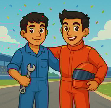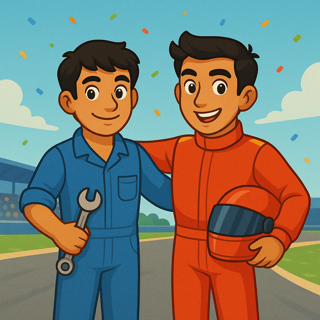 Arjun wasn’t the driver, but he was the youngest mechanic at the academy. He would spend hours checking the engine and the tires, making sure every bolt was in place.