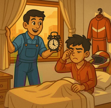 Arjun and Pratyush had been best friends for as long as they could remember. They shared one dream to win the biggest F1 race in the country. Pratyush was a natural behind the wheel. He could drift around corners with great ease. His sharp reflexes only added to his skill. Everyone believed he had the talent to win the race but there was one problem. He was always late. He wasn’t disciplined enough to take things seriously.