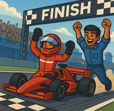 Final Day: The race began, and Pratyush was neck and neck with the other drivers. The atmosphere was tense. But when he crossed the finish line, the crowd went wild.
