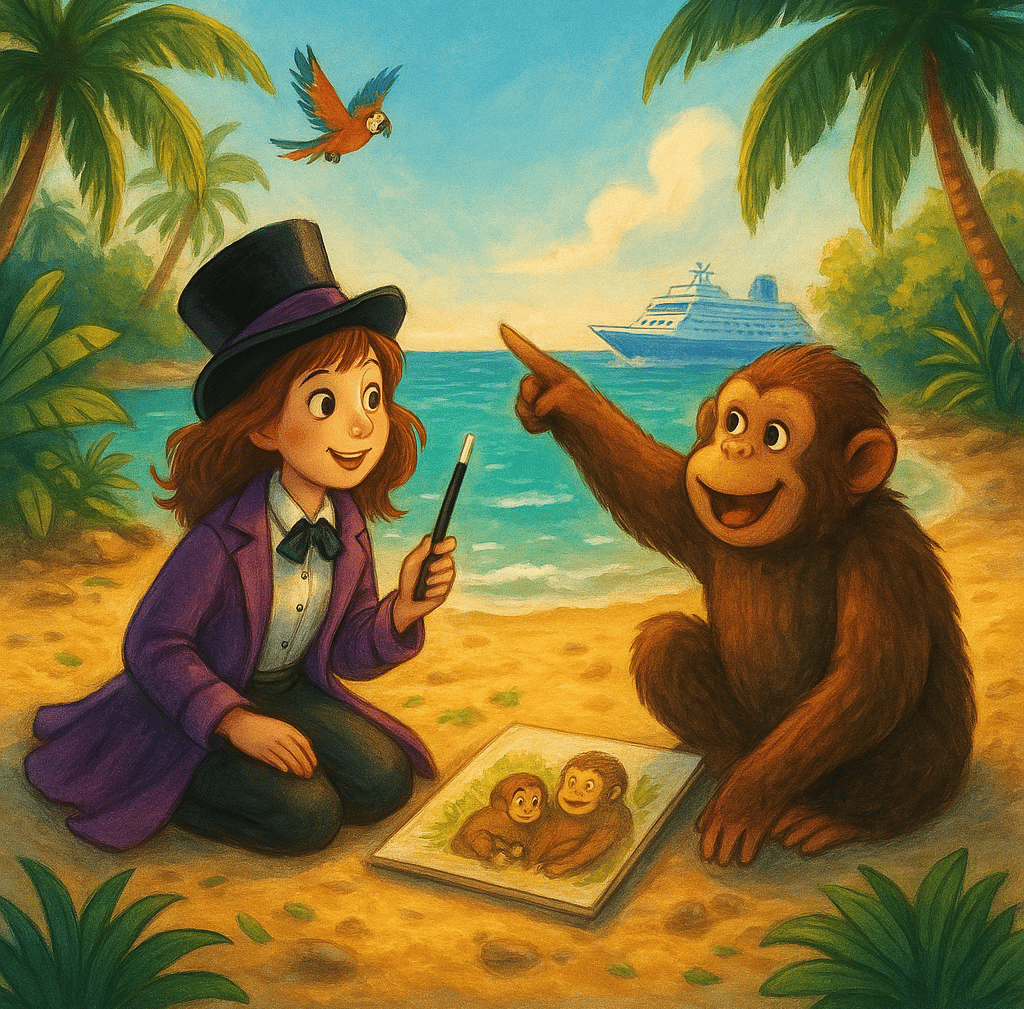 “You miss home too,” said Ellie gently. From that day, they became friends. Ellie showed the ape simple magic tricks levitating coconuts, making fireflies dance in the air.