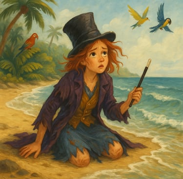 Ellie had only her magical wand, tucked safely in her coat. But magic couldn't make a boat. So, she set up a small camp, made friends with the parrots, and hoped for rescue.