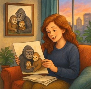 The ape, whom Ellie named Inko, drew pictures of ships, cities, and stars. Together, they shared bananas, stories, and dreams of going home.