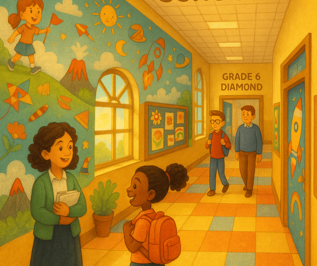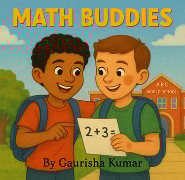 They both are students of ABC World School. The school is very big and has a red brick building. The school has a large green lawn and colorful murals. The teachers are very kind and helpful. They both go to the same class and are in Grade 6, section Diamond. They both walk to school together in the morning and often go back together too. They share everything, from pencils and erasers to jokes and secrets. But there was one thing they didn’t agree on: who is better at mathematics. And often argued about the same!