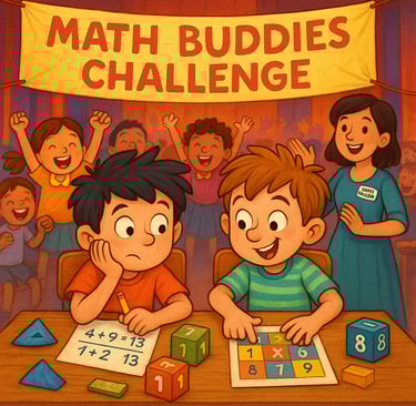 They reach the school next morning and are excited. Soon the teacher calls both of them in the school auditorium and they read about “Math Buddies”. They realize that it is a group competition. Both of them are upset that they are on the same team. The competition begins and they try to outsmart each other and aren't able to solve anything. Then Ben said, “Sam you are fast with calculation so you focus on that I will look for shortcuts and tricks.” Once they started working together they breezed through the puzzles.