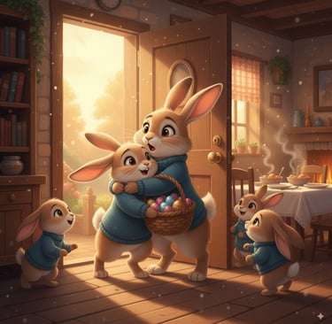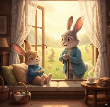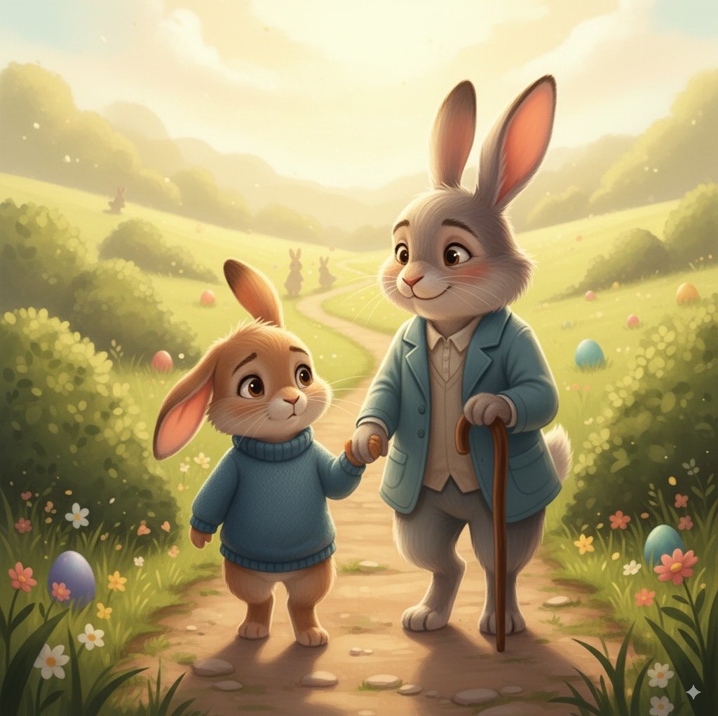 I glanced nervously at a cluster of dark bushes. Once, those shadows would have sent me scurrying home. But now, with the old rabbit’s paw resting gently on mine, they didn’t seem quite so frightening.