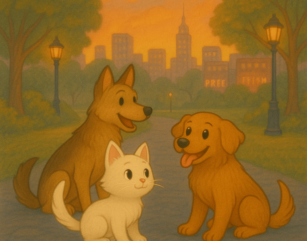 Walking worriedly they reached Central Park. It was late evening. There suddenly a stray dog came and said to them, “This place is not safe for pets at this hour of the day. You guys should go to the restaurant lane downtown looking for food. I have heard restaurant owners keep the leftover food for strays like salad, chicken, fish, and milk.” Cut everything you say “Milk” said Mitten. “O.. o…” said Guppy.