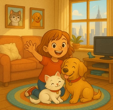It is morning and Alice is getting ready for work. Alice is a very beautiful girl and she is also very sincere. She is kind and makes other people happy. She lives in an apartment on the 10th floor of Park Avenue in New York. It is very luxurious. There are fluffy white pillows and cute little pictures everywhere. There is a plush sofa and little television. But the thing Alice likes the most is playing with her pets, Guppy and Mitten. Guppy is a Golden Retriever, who is fearless and cute. He has a special ability too. It is that he can sniff the danger even if it is miles away. He is like a big plushie toy.