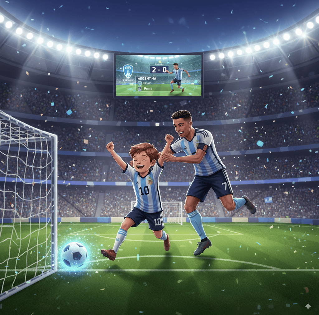 He was playing for Argentina and to his surprise he was in the same team as Ronaldo. His happiness was unmatched as he is a huge Ronaldo fan. He played his best game and scored a goal for his team. Then Ronaldo used his famous bicycle kick and scored another goal. Their team was winning and Peter was enjoying every minute of living his dream of playing soccer with his idol- Ronaldo.