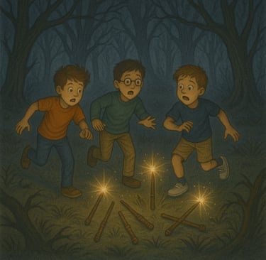 The boys screamed and ran into the forest again- breathless and trembling! After a while, they stumbled upon a glowing patch in the woods.