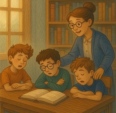One day at school the boys were in the library after recess, reading a book named, “Chris the ghost”. They were enjoying the build-up.