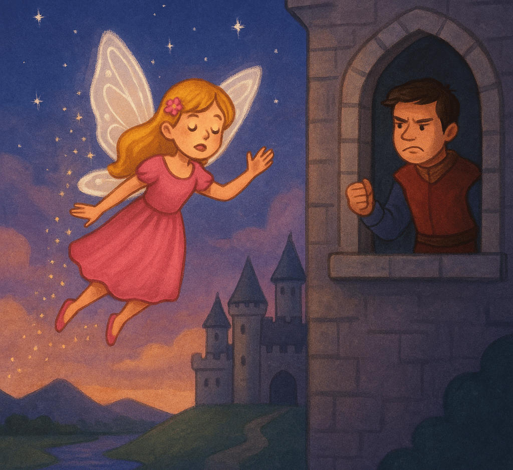 The prince shouted, “No, you can't do that. Stop!” But Lily zoomed out of the window into the sky.