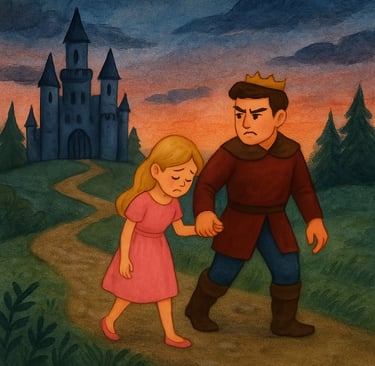 The prince was tall, mean, rude and never smiled. He took Lily to his gloomy castle. He said, “Now you will live here and do everything I say.”