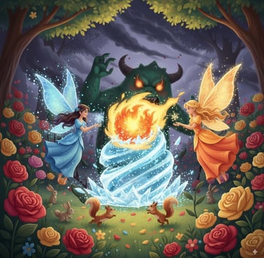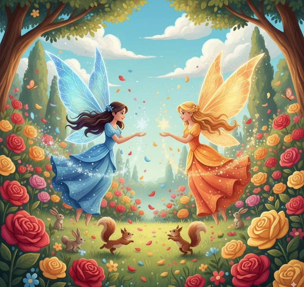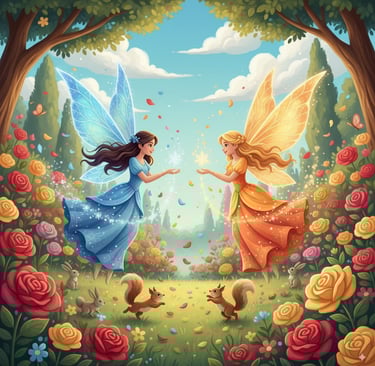 In a colourful garden, where roses danced and the sweet smell of flowers filled the air, lived two beautiful fairies – Sia and Mia.