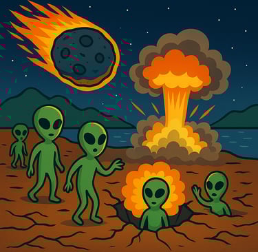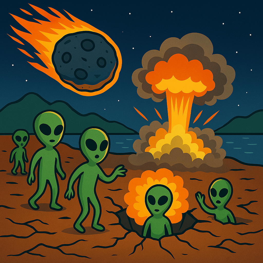 Once upon a time, an asteroid hit Earth. The place was destroyed, and all life in that area was wiped out. Aliens emerged from within the asteroid, and when humans discovered them, they were terrified. Luckily, the aliens didn’t harm anyone unless someone tried to communicate with them.